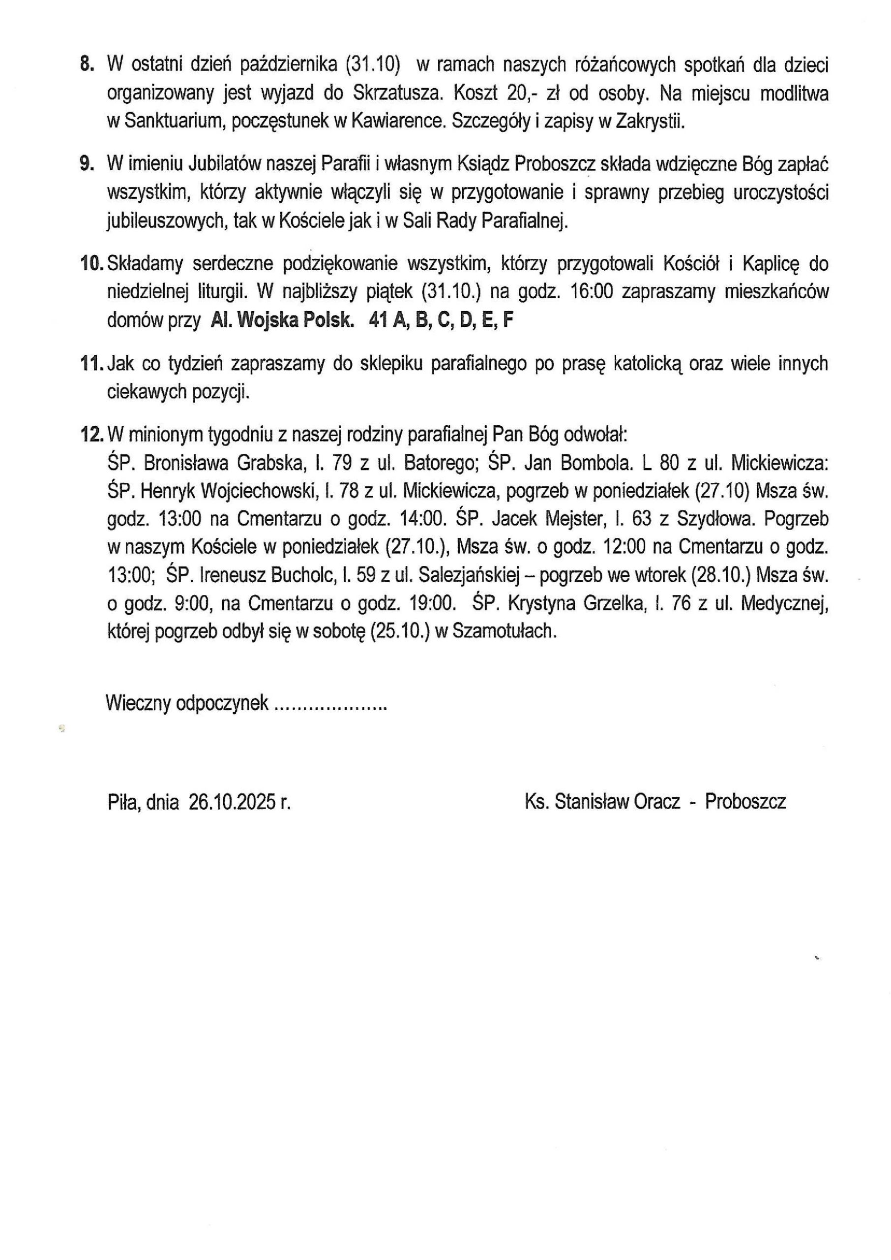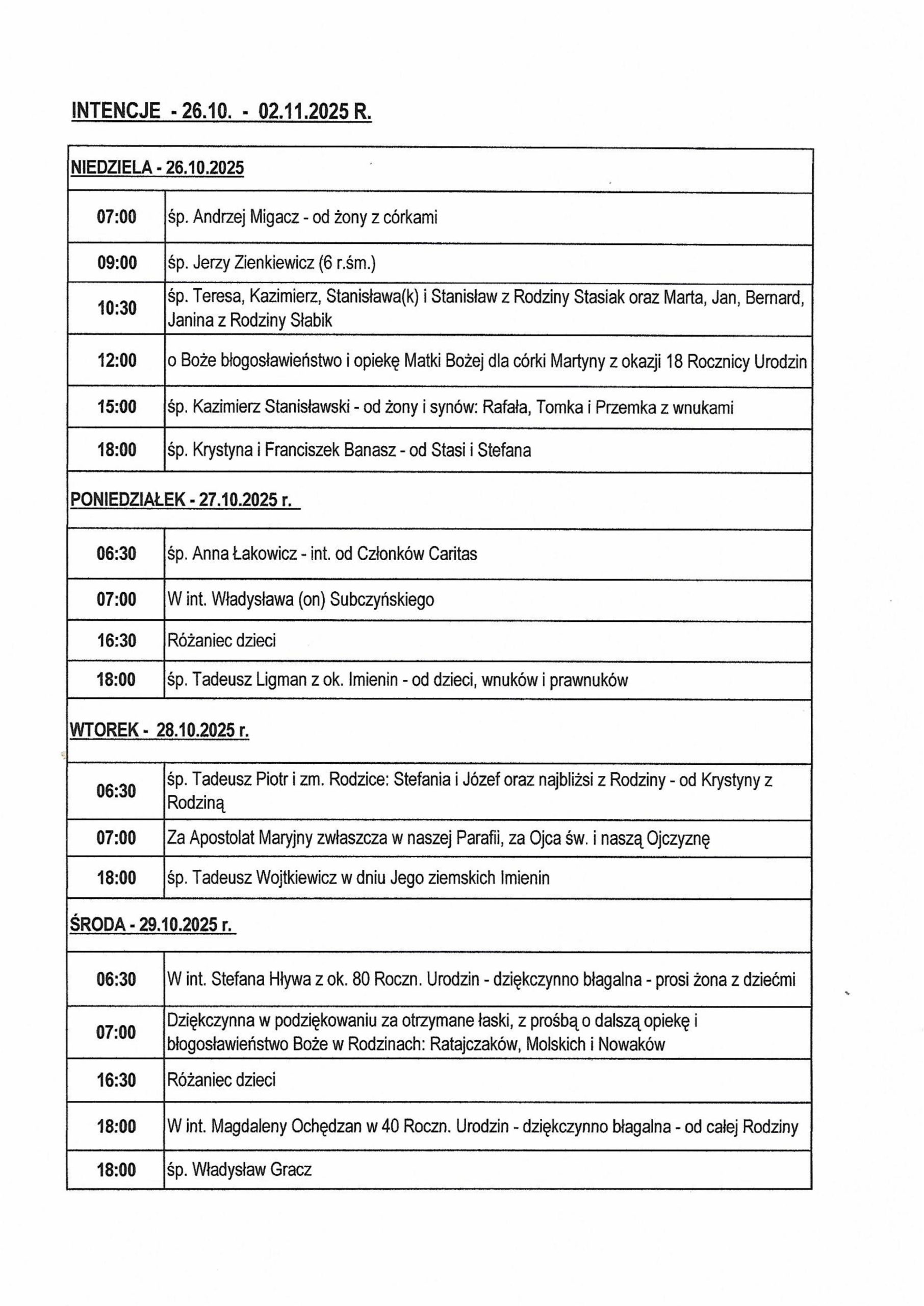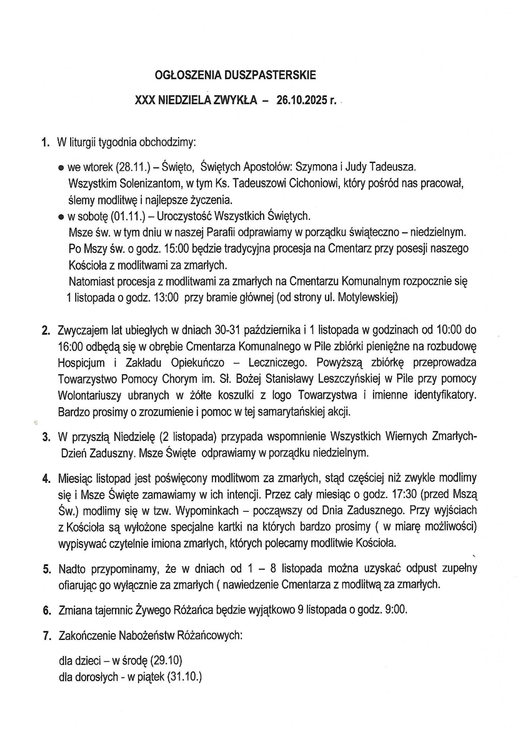 XXX NIEDZIELA ZWYKŁA – 26.10.2025 r.