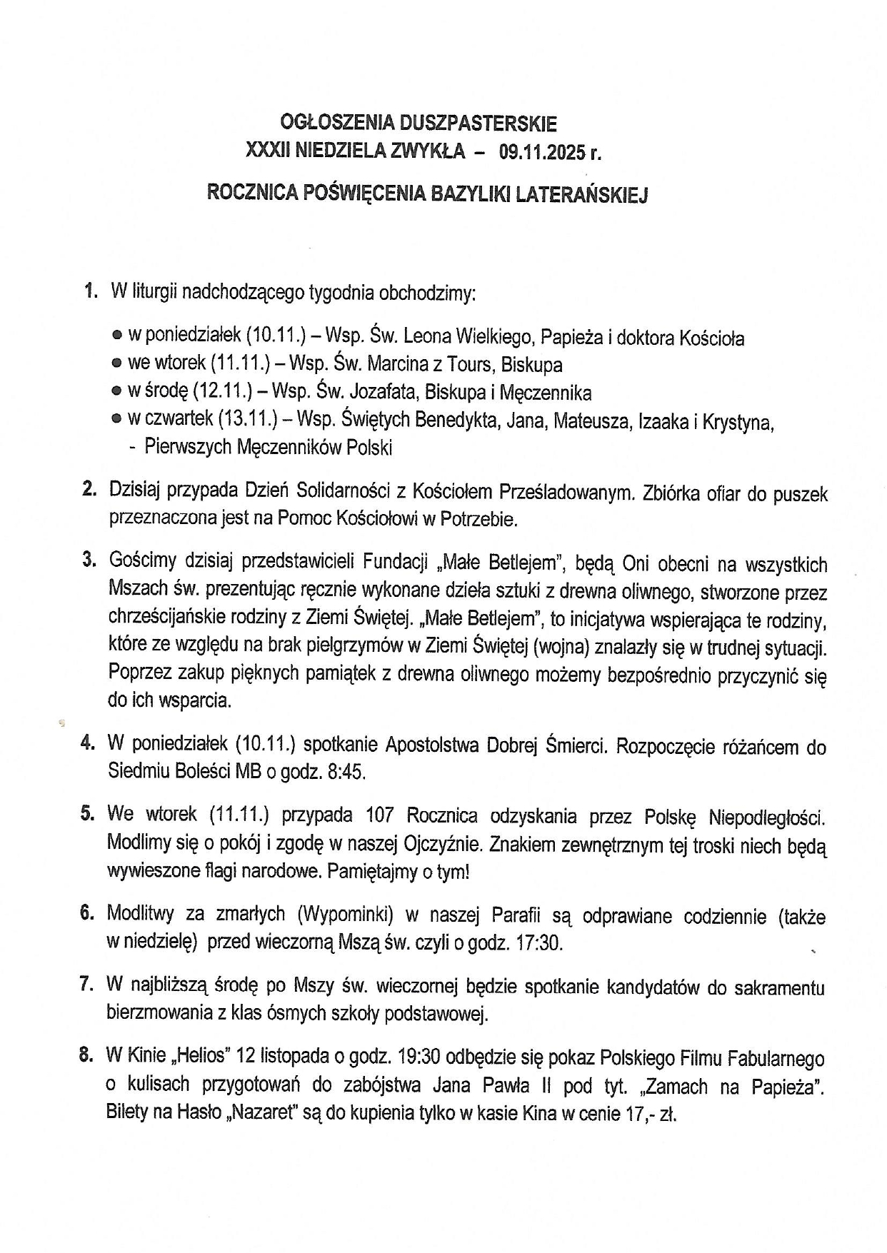 W pilnych sprawach (pogrzeb, wezwanie do chorego) prosimy kontaktować się z ks. dyżurnym lub innym księdzem o dowolnej porze.